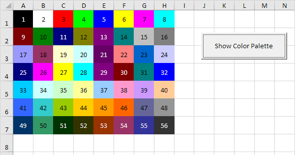 The color is specified as an index value into the current color palette, or as one of the following . Today let's try to understand how colorindex property in excel vba works. Here's is a sample code snippet (with a . Set the color of a cell / range · example 2: After running following script (vba excel) in my current workbook, i'm getting different colors compare to standard colorindex palette.